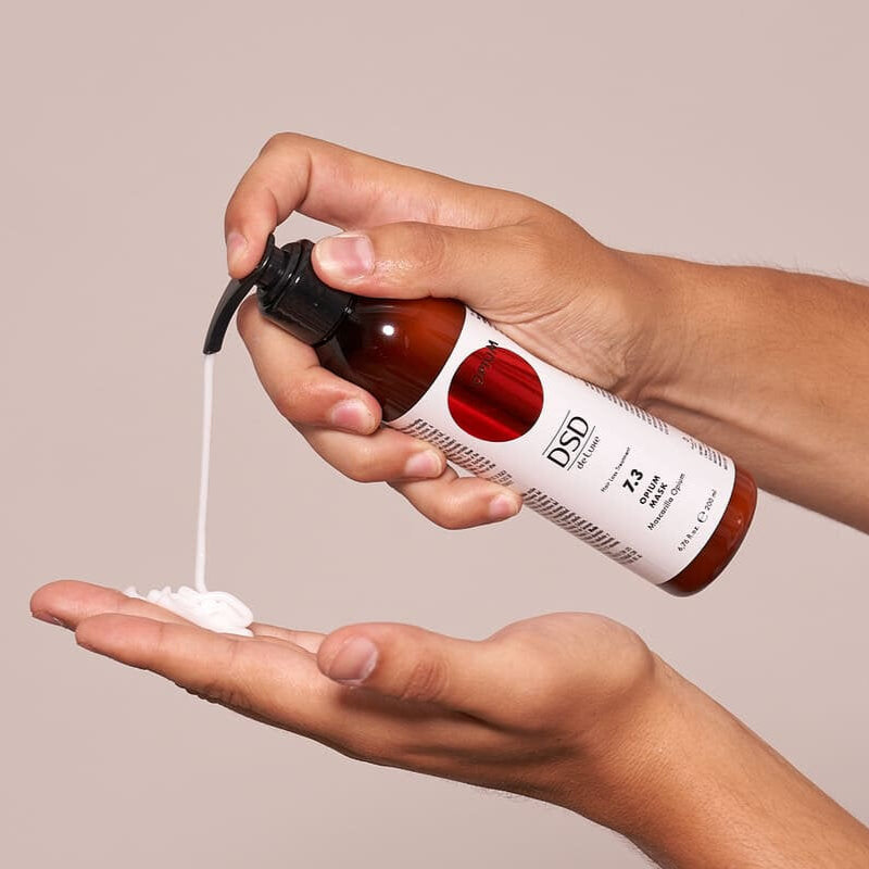 Нанесіть достатню кількість засобу на вологу шкіру голови та волосся, акуратно помасажуйте. Залиште діяти на 5–15 хвилин. Ретельно змийте великою кількістю води. Для найкращих результатів мийте волосся шампунем 7.1 Opium Shampoo.
