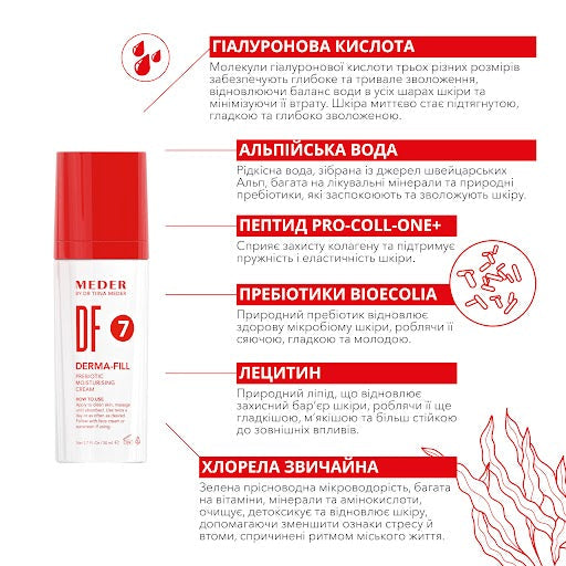 Очистіть обличчя, нанесіть сироватку за звичайною схемою. Якщо у вашій б’юті-рутині присутній якийсь активний курс Meder, використовуйте концентрат і маску перед бустером. Після цього нанесіть невелику кількість крему Derma-Fill, злегка помасажуйте до повного вбирання. За необхідності Derma-Fill можна використовувати до 4-6 разів протягом дня. Derma-Fill особливо необхідний під час спекотного сезону, після інсоляції, під час подорожей і перельотів, в періоди стресу і при загоєнні після пошкодження шкіри. Особливо рекомендується використання Derma-Fill, якщо ви проводите хоча б кілька годин в день в кондиціонованих або в приміщеннях з опаленням. Поєднуйте з іншими кремами для обличчя Meder (завжди спочатку наносьте Derma-Fill) для додаткового зволоження, після завершіть догляд нанесенням вашого крему Meder.