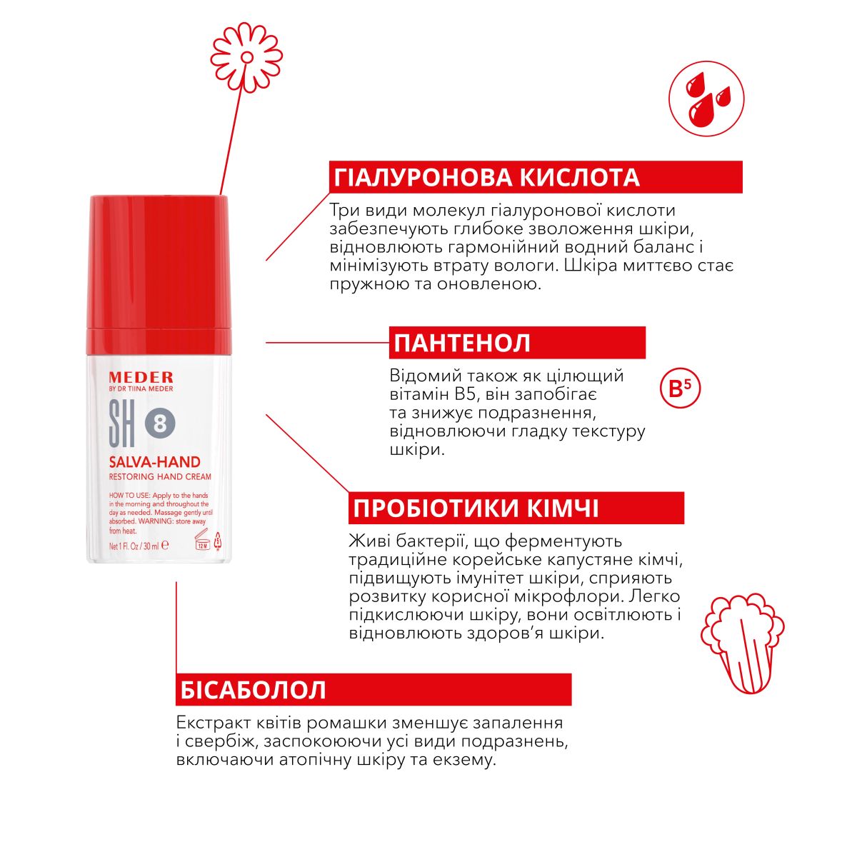 Багаторазово відзначений нагородами крем для рук Salva-Hand забезпечує тривалий захист і комфорт, працюючи як пара "невидимих рукавичок". Його легка гелева текстура швидко вбирається, залишаючи шкіру зволоженою та оновленою.